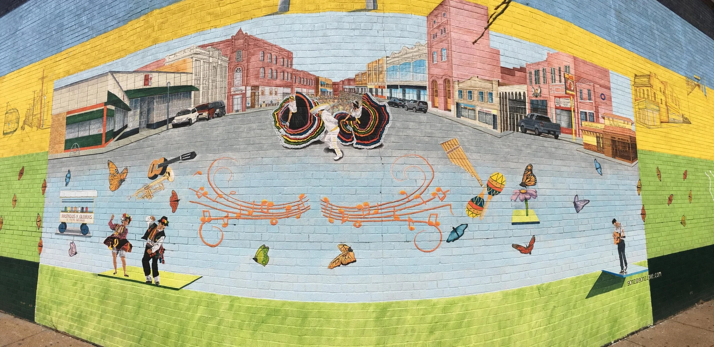 The Cherokee Street Development League commissioned me to paint a mural , which has recently received a historic marker sign for Calle Cherokee, recognizing the important cultural and economic contribution of Mexican Americans to the revitalization of the commercial corridor called Cherokee Street.
